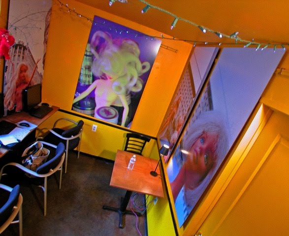 WEST SEATTLE ART WALK: That’s the Barbie-inspired art of Wyn Bielaska, the Hotwire Online Coffeehouse (WSB sponsor) featured artist during tonight’s West Seattle Art Walk, 6-9 pm at dozens of venues all over WS (see the list, and learn about the artists, here). Other events happening during the Art Walk – C and P Coffee‘s Wine Club, and M3 Bodyworks (WSB sponsor; 5410 California SW) is having a Holiday Open House featuring photographer Wayne Burger‘s underwater work. (added 2;04 pm – more info on this:)